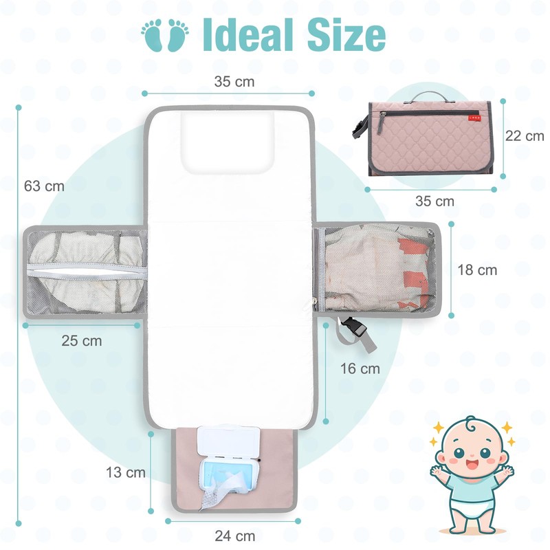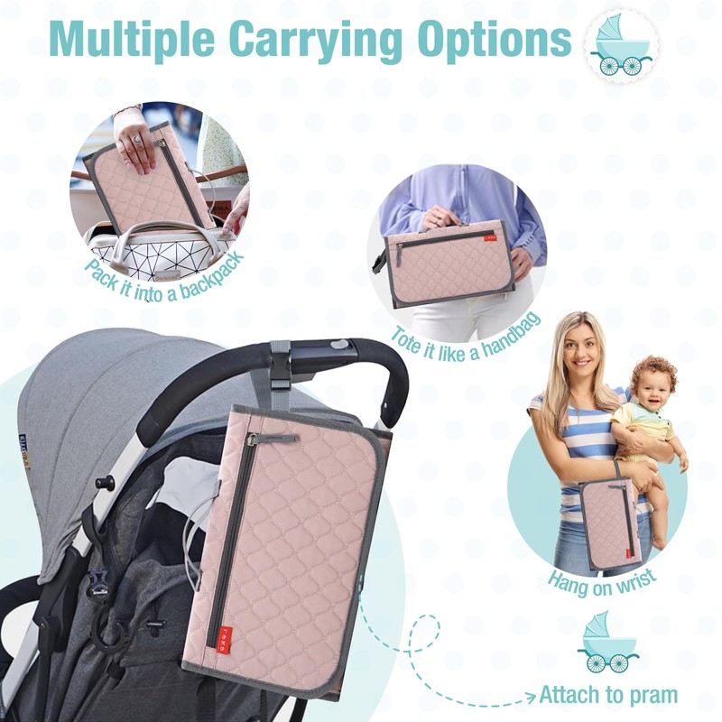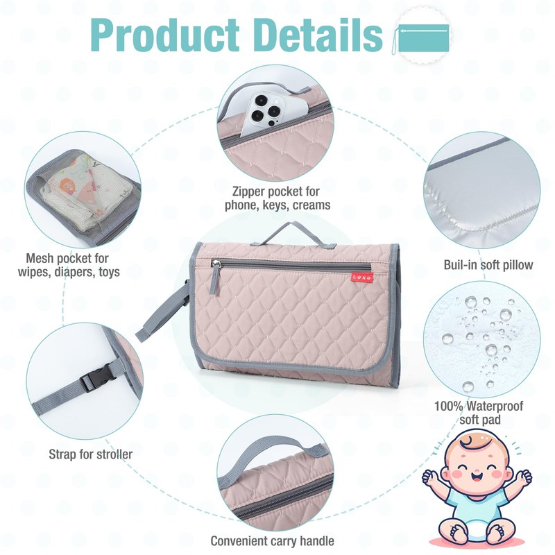 - Lekebaby Portable Travel Changing Mat Changing Mat with Wet Wipe Bag and Pillow Pink