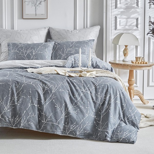 - EXQUISITE CUSTOMIZED PACKAGE - Grey double duvet cover set with branches pattern, packed with exquisite customized packing bag, shipping fast, Lekesky cotton double duvet cover, they would be delighted with this cozy soft and fashionable duvet cover sets
