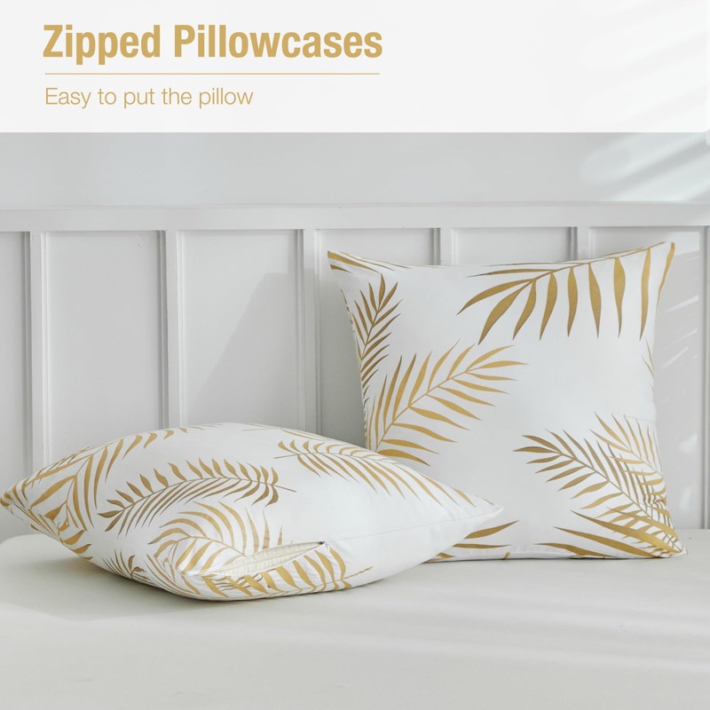 Lekesky Bed Linen 135 x 200 cm 4-Piece - 2 Duvet Covers 135 x 200 cm + 2 Pillowcases 80 x 80 cm, White Duvet Cover with Golden Tropical Palm Leaf Pattern Bedding Sets Microfibre with Zip