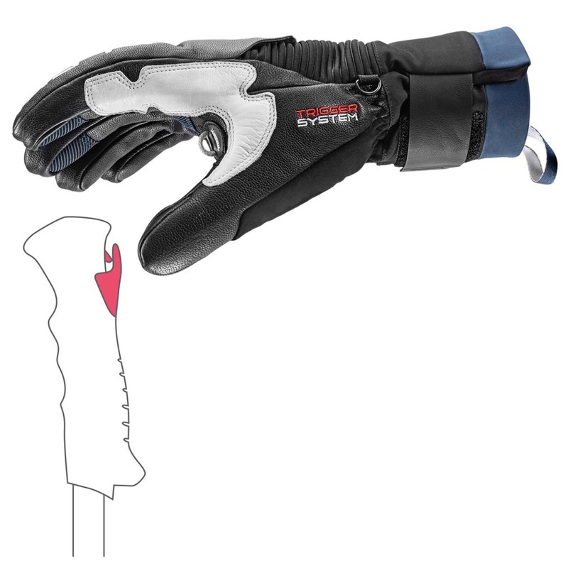 - Trigger 3D system - The trigger system offers you more control thanks to a direct connection between hand and stick. Quick clicking in and out is no problem and a safety release can protect against injury. All alpine trigger loops and gloves are compatible with all alpine trigger poles.