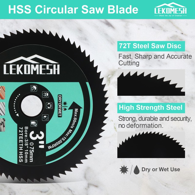 LEKOMESH Hoja de sierra circular HSS – 75 mm x cenador 3/8 pulgadas/10 mm discos de corte para madera, cobre, aluminio, plástico y metal blando