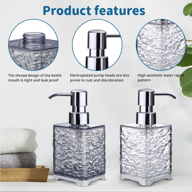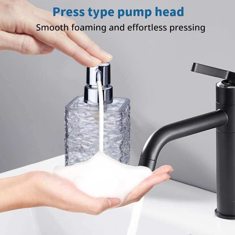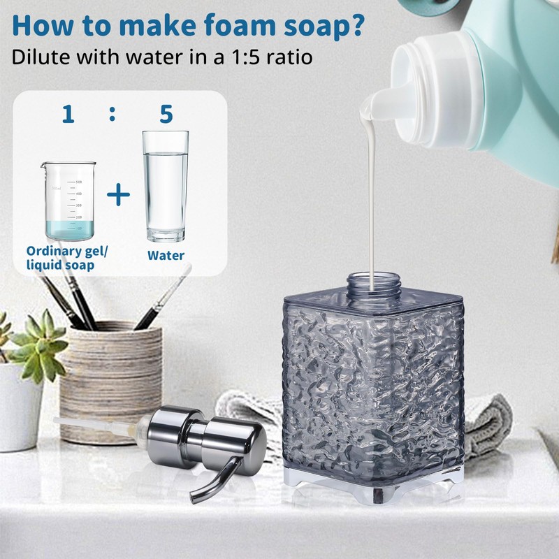 - 【Elegant Acrylic Foam Soap Dispenser】This modern foam hand soap dispenser is made of high-quality transparent acrylic, crystal clear, elegant and beautiful. The exterior features an attractive water ripple design with a sleek silver foam pump that will perfectly complement your bathroom counter.