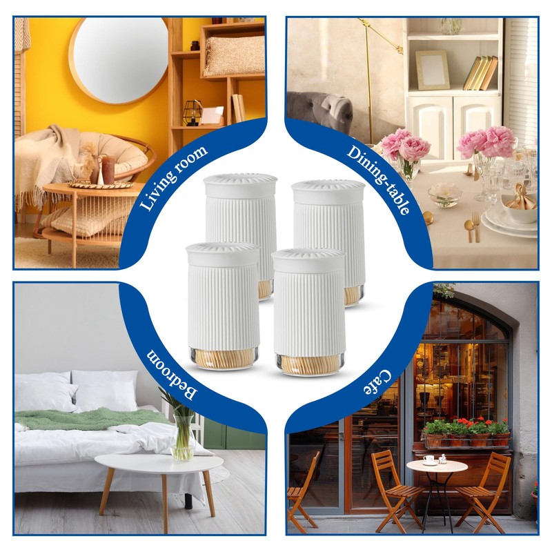 - 【Packaging includes】You will get 4 white toothpick dispenser funny (without toothpicks)in neutral white colour suitable for any scene. It is not only a decorative item, but also a practical item in your home, as well as a must-have in your family's daily necessities.
