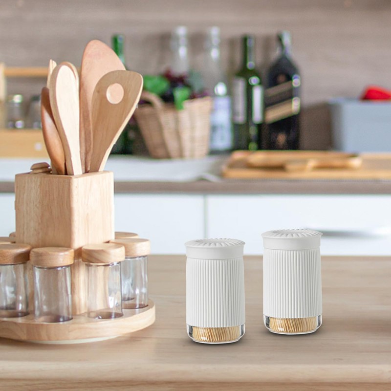 - 【Practical Lid】This tooth pick holder rotates the top to easily pour out the toothpick and rotates the bottom to easily open the toothpick bottle. With the protection of the lid, we can keep the toothpicks clean at all times.