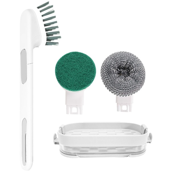 - 【3 Durable Brush Heads】The set of dish brush with handle contains 1 sponge brush head, 1 ball brush head and 1 tough bristle head. The tough bristles and absorbent sponge effectively remove dirt and grime without scratching. The ball brush head can remove all kinds of stubborn stains.