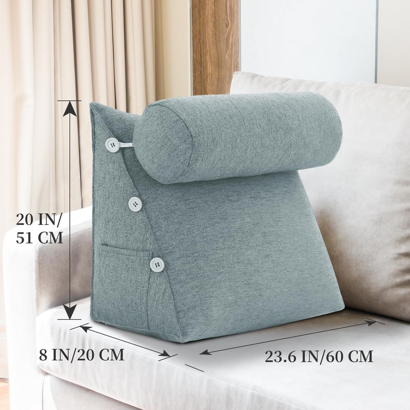 • This high-quality wedge pillow is designed with premium, high-elastic polyester fiber filling, offering a fuller, more supportive shape that contours to your body for optimal comfort. The reading pillow cover is made from a durable Removable Linen Cover, ensuring long-lasting wear.Designed to provide excellent back support when sitting or a gentle incline when lying down, this headboard pillow is ideal for activities like reading, gaming, or watching TV.
