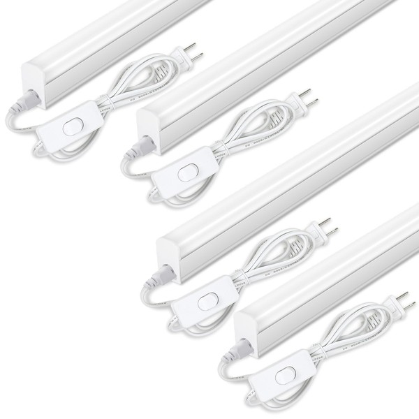 LELEJU LED Under Cabinet Lighting, 1FT, 5W, 6000K, 500lm, T5 Integrated Single Fixture, Under Counrer Lights for Kitchen, Corded Electric with ON/Off Switch (Pack of 4)