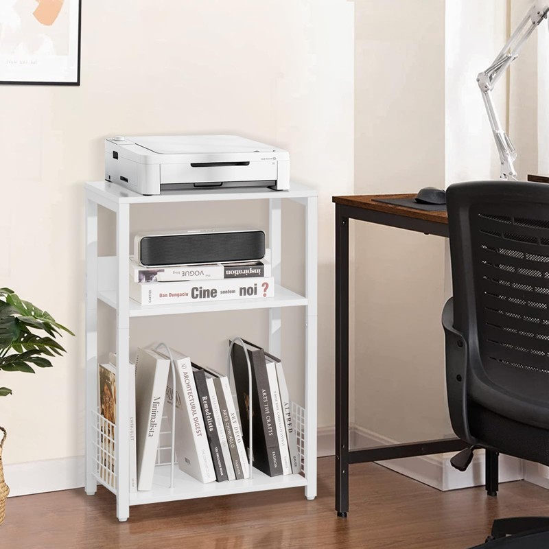 LELELINKY White Side Table,Small Printer Stand with Storage Shelf,3 Tier Industrial Bedside Tables,Vinyl Record Player Stand,Modern Sofa Night Stands for Living Room Bedroom Office Small Spaces