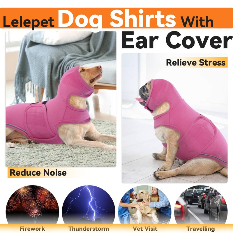 Lelepet Dog Calming Hoodie with Ear Cover - Anxiety Relief Reflective Vest for Fireworks/Thunderstorms