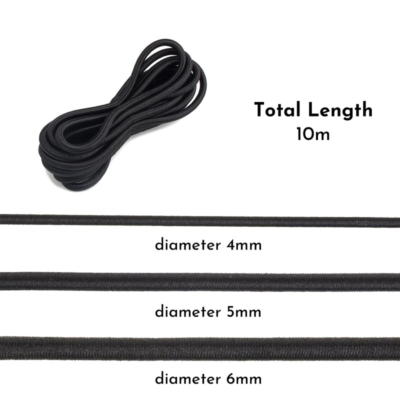 • Package Contents: You will receive 1 roll of white solid bungee cord. Each rubber rope is approx 10m/32feet in length; Available in 3 different diameters options: 4mm, 5mm, and 6mm.