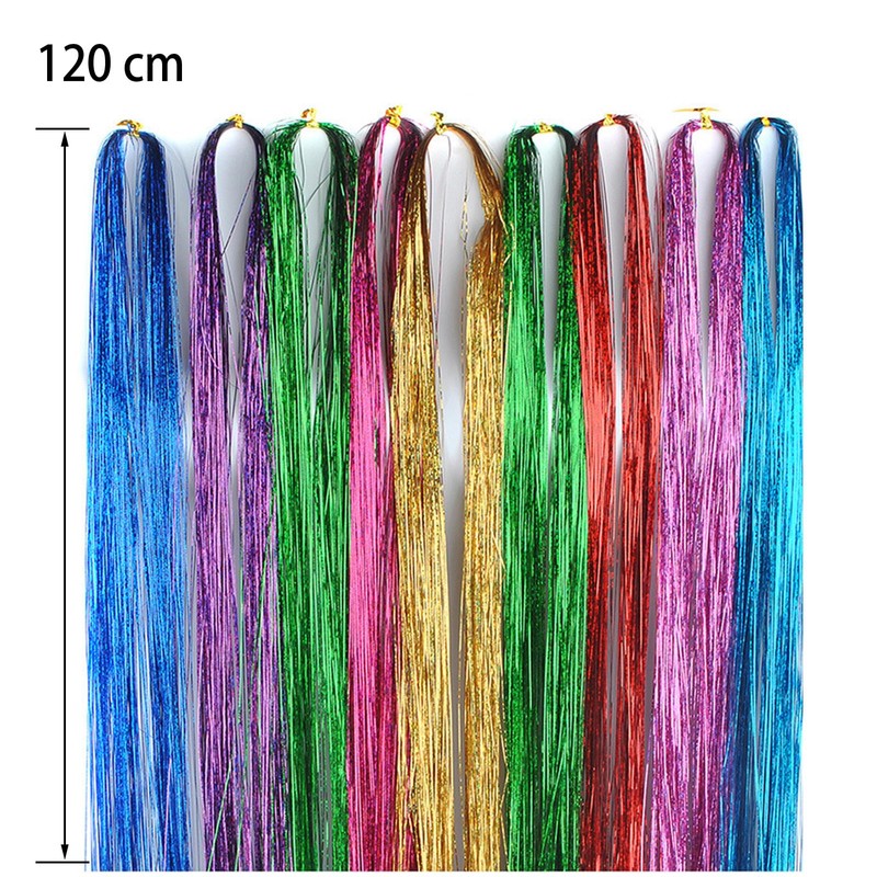 - Easy to Use: The length of sparkle hair extensions are 120cm/47in. It can be cut according to your hair extension requirements. Simply tie a knot and secure the strands to your head.