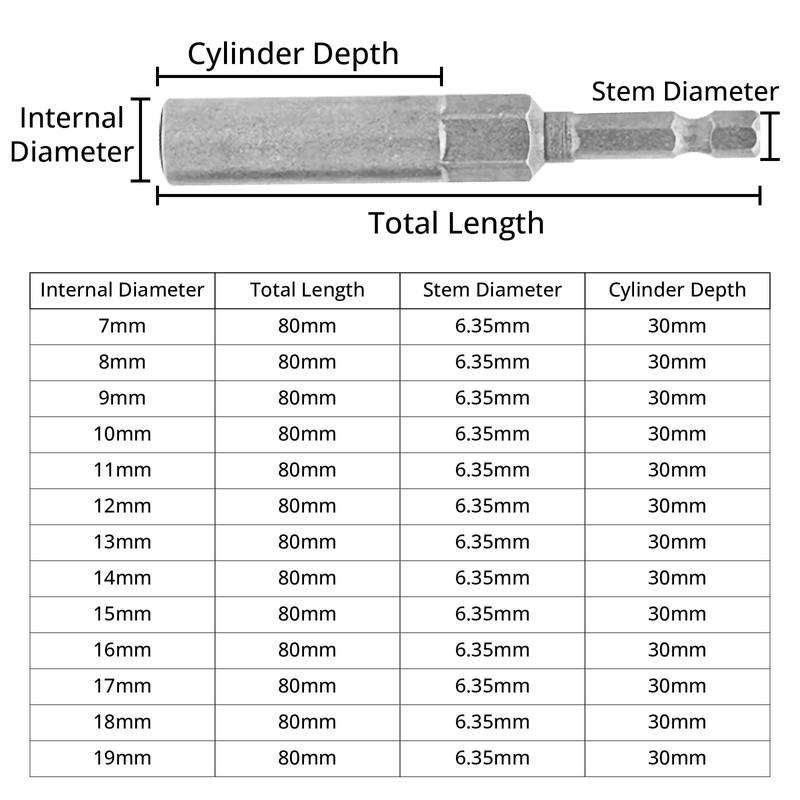 - Size: With a length of 80mm and socket sizes ranging from 7mm to 19mm, the nut drill bit can handle a wide range of nut sizes, making it an essential tool for any project.