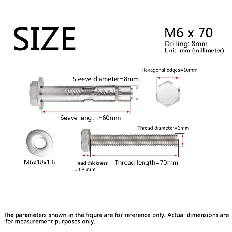 - Easy to Install: Just drill a hole in the wall, insert the expansion screw bolts into the hole, then use a wrench to tighten the hex nut outside the wall hole. Perfect for builder, engineer, decorator or DIY enthusiast.