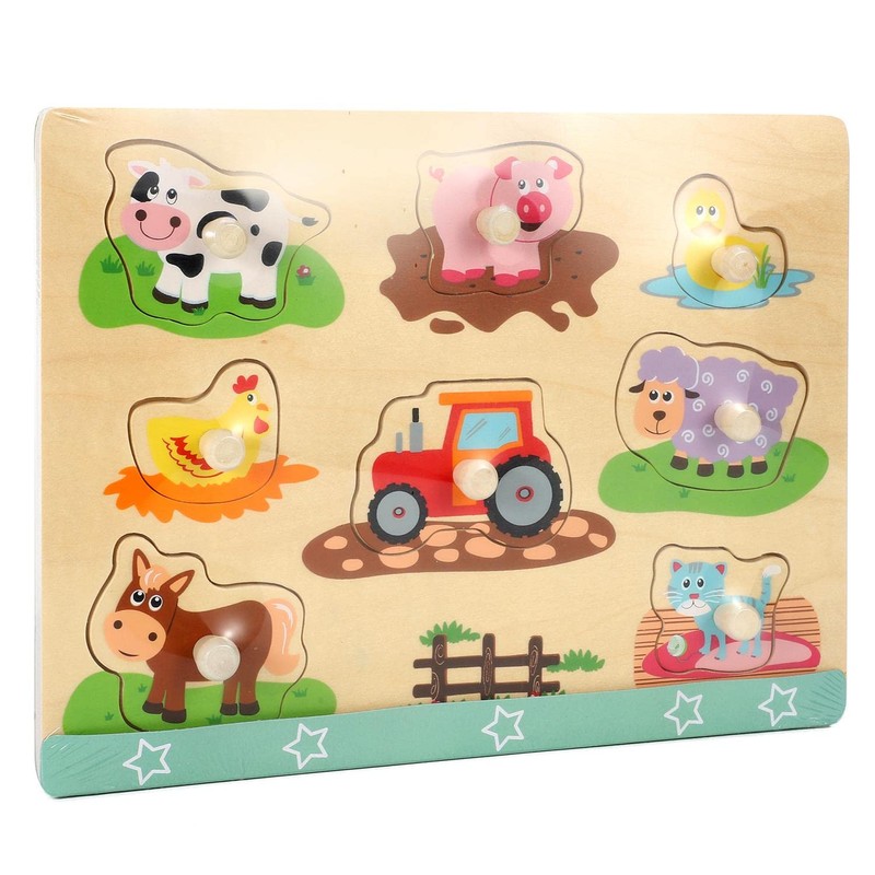 • The puzzle contains 1 cow, 1 pig, 1 duck, 1 chicken, 1 sheep, 1 horse, a cat and a tractor