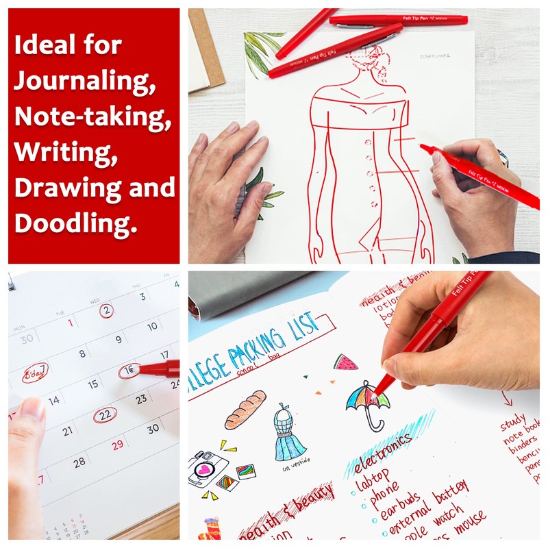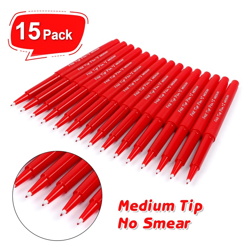 - RED FELT TIP PENS: Lelix felt tip pens set has 15 red pens. Versatile felt tip and rich ink can create eye-catching, vibrant impression