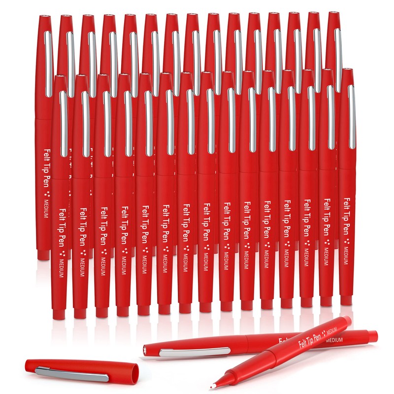 - RED FELT TIP PENS: Lelix felt tip pens set has 30 red pens. Versatile felt tip and rich ink can create eye-catching, vibrant impression