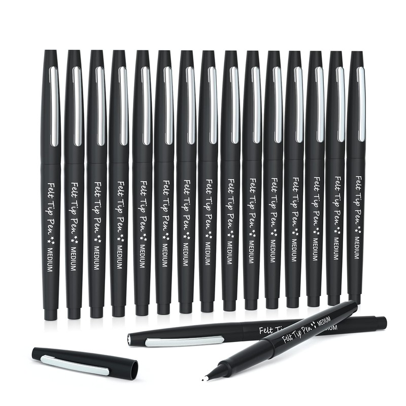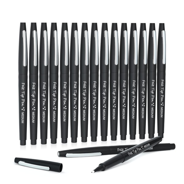 - BLACK FELT TIP PENS: Lelix medium tip pens set has 15 black pens. Versatile felt tip and rich ink can create eye-catching, vibrant impression