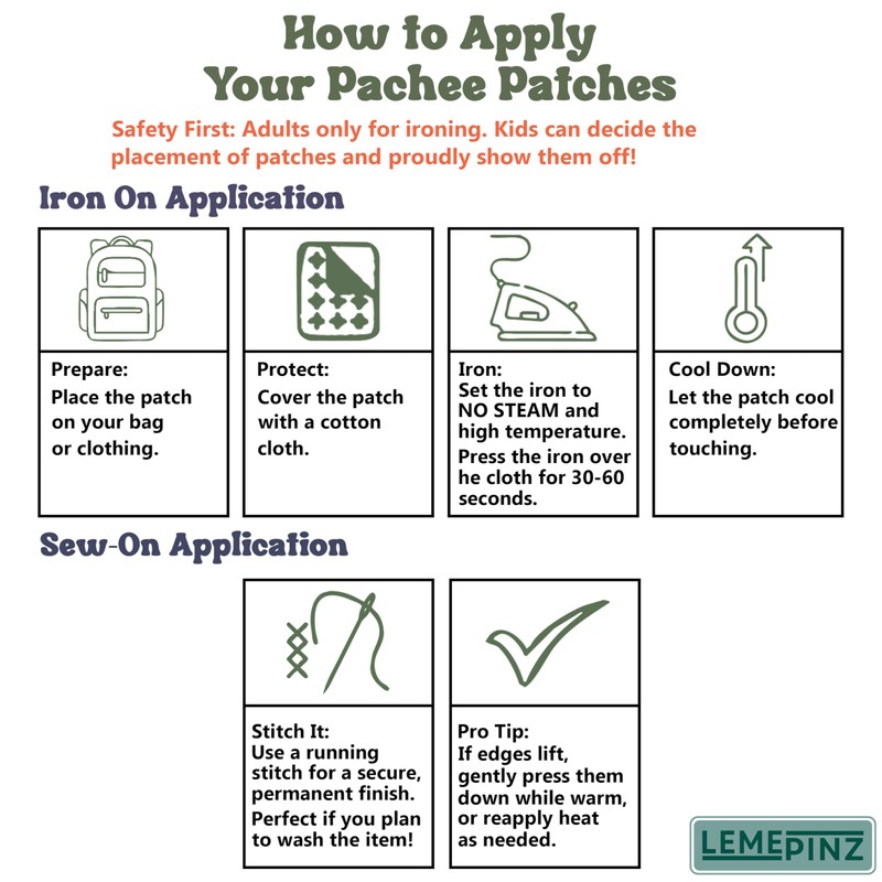 - Sew On/ Iron On Patches: LEMEPINZ's premium sew on patches, iron on embroidery patches, sew iron on patches embroidered patches are designed with two convenient application methods: Sew-On Patches and Iron-On Patches allowing you to easily customize your apparel, accessories, and more. For a long-lasting, secure hold, you can sew our sew on appliques, sew patches on directly onto your desired item. If you're looking for a quick and hassle-free application, our iron on patches, patch for clothes also feature an iron-on adhesive backing.
