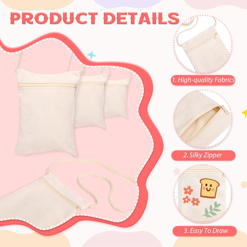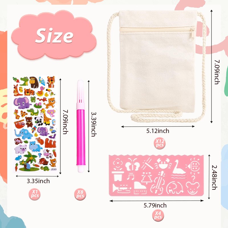 Features: The item contains 12 pcs canvas bag, 6 drawing template ruler, 1 sticker. The product size is 7 × 4.7 Inch. Canvas bag is made of premium canvas, lightweight, soft and long-lasting, and these multipurpose cosmetic bags can be washed repeatedly. The canvas pouch can be used as invoice bag, gift bag, coin purse, mobile wallet, business card bag, ladies cosmetic bag.