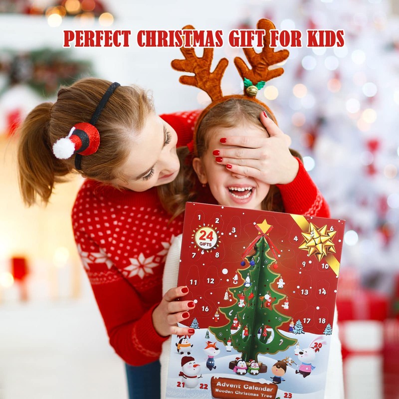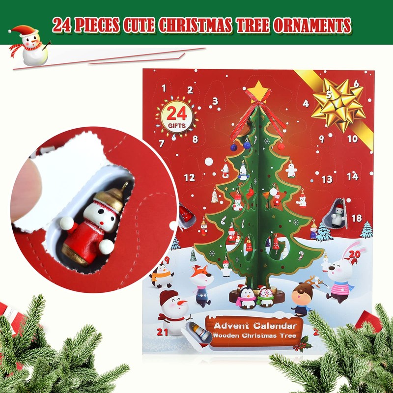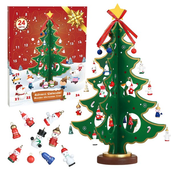 LEMESO Advent Calendar Mini Wooden Christmas Tree Advent Calendar Wooden Christmas Tree 3D Christmas Tree with 24 Hanging Decoration Wooden Christmas Tree DIY Toy Gift for Children Christmas