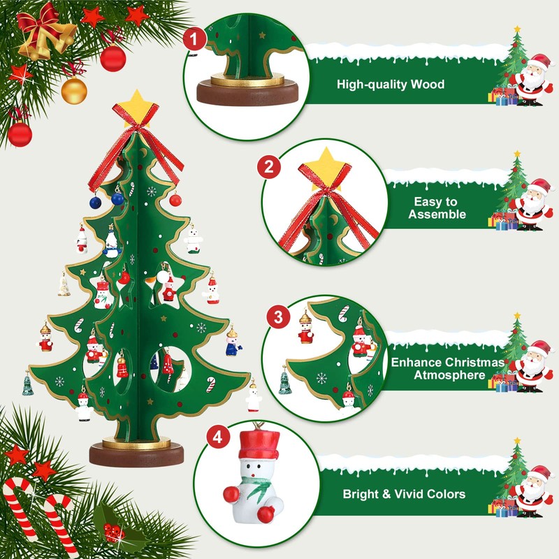 - 🎄Easy to install: with sturdy base and decorative mini ornaments. Once installed, you will receive a unique Christmas tree!
