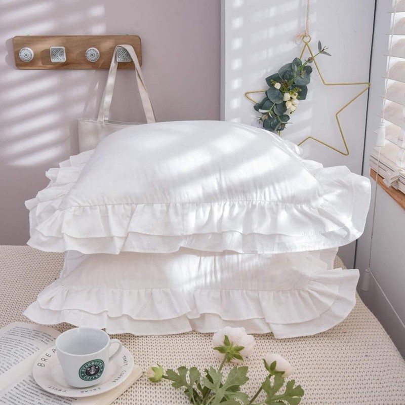 - Widely Used: The square couch euro pillow shams with long multiple white ruffles, make your bedroom more elegant and gorgeous.