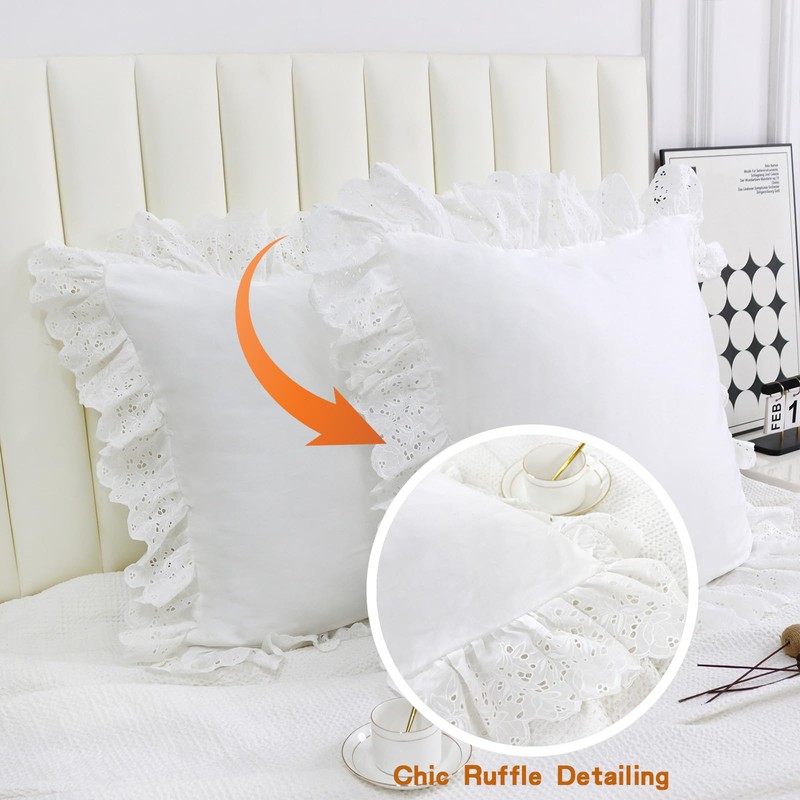 - Decorative Pillow Covers: Our ruffled pillowcases are crafted from beautiful, high-quality materials. The delicate ruffle detail adds a charming cottage-style look, perfect for creating a cozy, country-inspired vibe.
