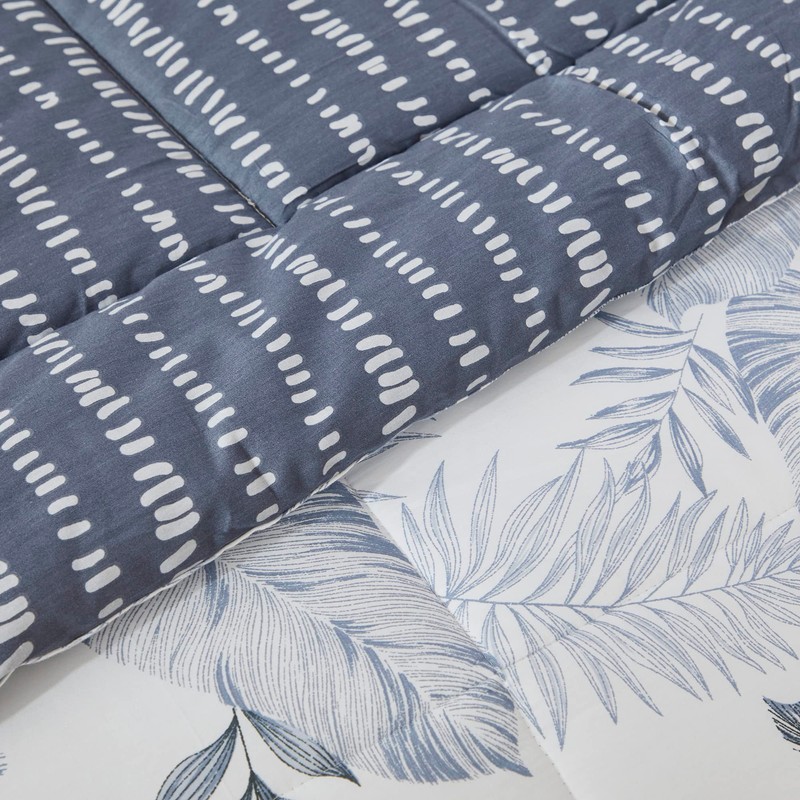 Lemfux King Size Comforter Set Blue 3Pcs Cotton Comforter Set with 2 Pillow Shams Reversible Plant Pattern White Comforter Bedding Sets, Lightweight Soft Breathable for All-Season