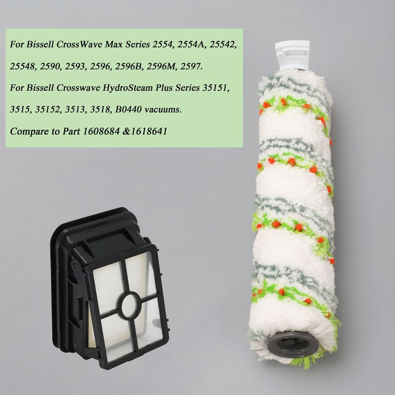 - FITS MODELS – These brushes and filters replacement fit for Bissell CrossWave Max Series 2554, 2554A, 25542, 25548, 2590, 2593, 2596, 2596B, 2596M, 2597 vacuums and for Bissell Crosswave HydroSteam Plus Series 35151, 3515, 35152, 3513, 3518, B0440 vacuums. Compare to Part # 1618641 & 1608684. These replacement parts work well for your vacuum cleaner.
