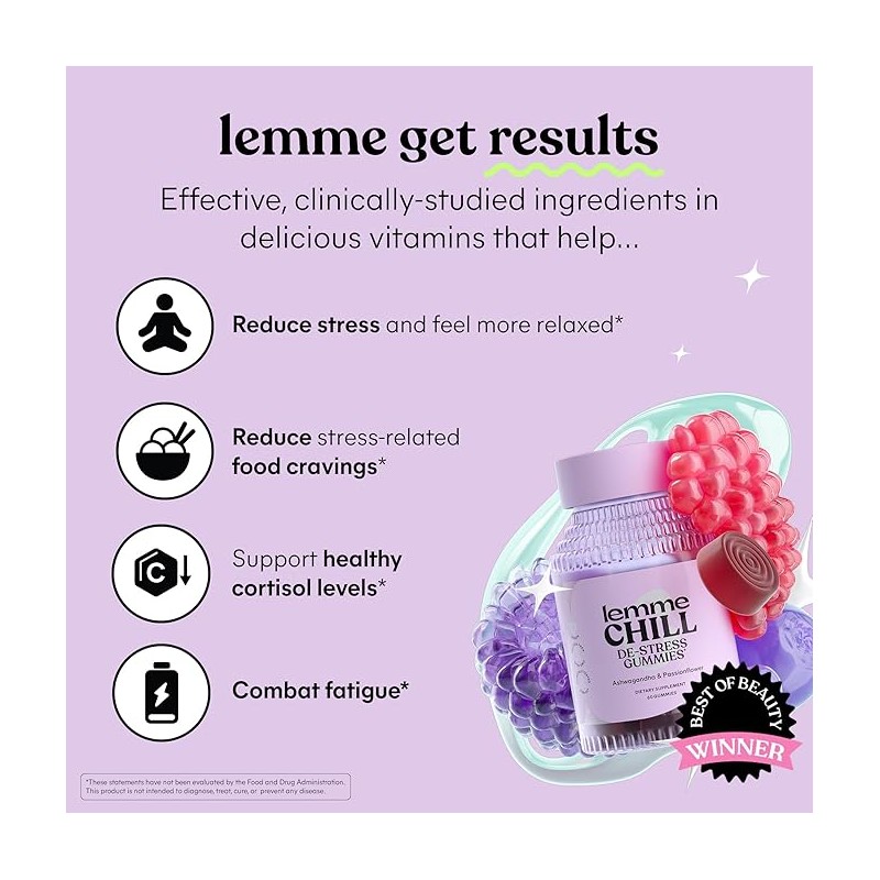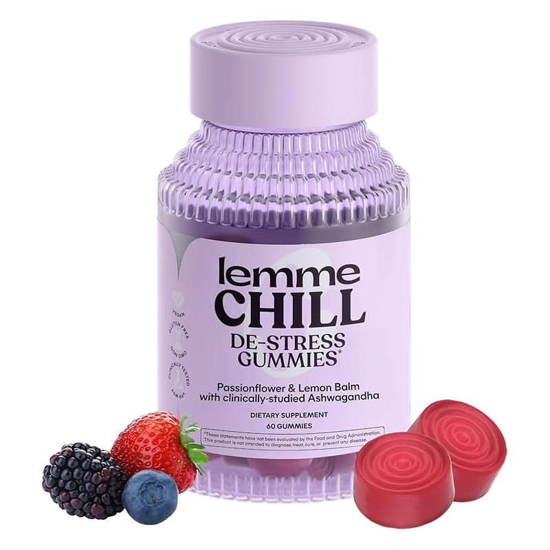 Lemme Chill Stress Relief Gummies with 300mg KSM-66 Ashwagandha, Lemon Balm, Passionflower & Goji to Support Relaxation, Healthy Cortisol & Sleep - Gluten-Free, Non-GMO, Mixed Berry (60 Count)