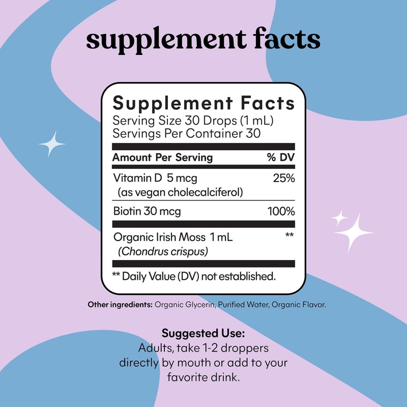 Lemme Irish Sea Moss Organic Liquid Drops with Vitamin D3 and Biotin for Trace Mineral Support, Immunity, Hair, Skin & Nails, Brain Health - Gluten & Sugar Free, Non GMO, 1 oz, 30 Servings