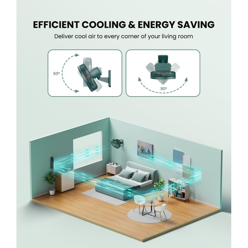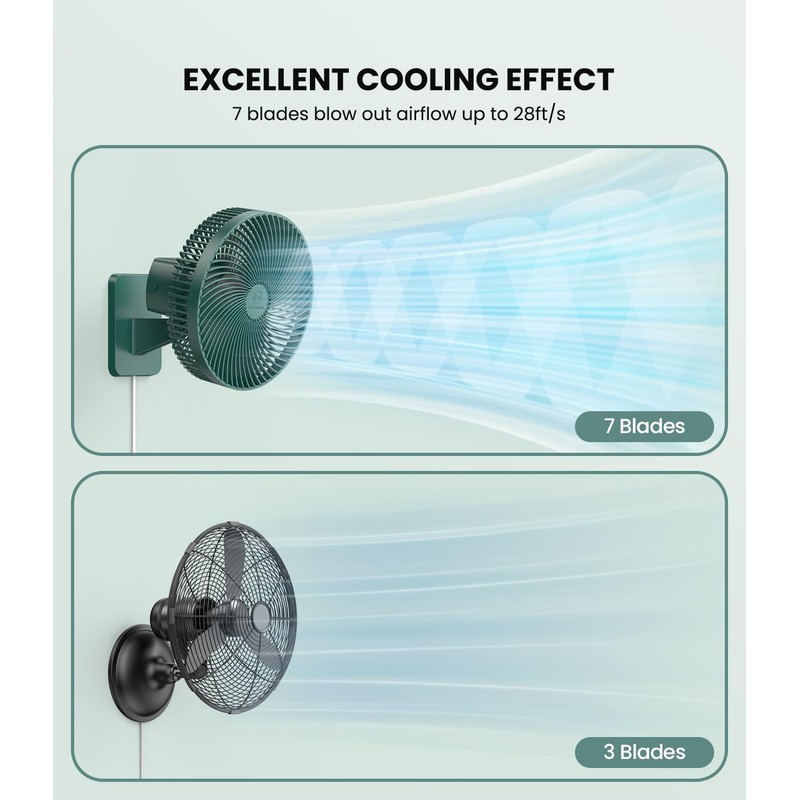 • 4 SPEED OPTIONS & ULTRA QUIET: This portable wall fan comes with 4 speed settings(low/middle/high/super), You can set the airflow on the desired setting. The maximum fan speed arrives to 8m/s of airflow, which is very strong than it’s size. Adopts a 100% pure copper brushless motorand unique Optimum air cut design, the oscillating fan works ultra quiet with powerful wind.