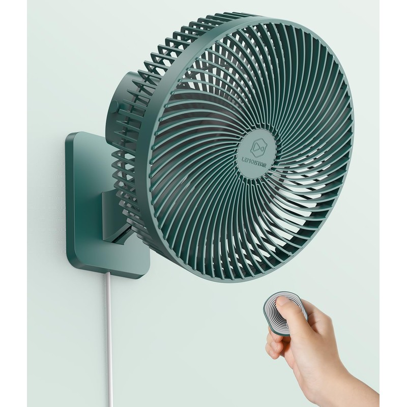 LEMOISTAR 10 Inch Wall Mounted Fan with Remote Control, 90° Oscillating, 4 Speeds, 4 Timer, Adjustable Tilt, 70 Inch Cord, Quiet, for Bedroom Garage RV Office Home Patio-Green