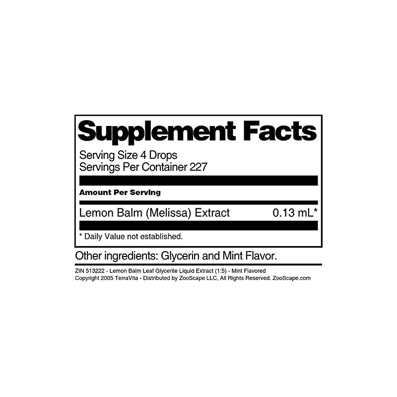 - Lemon Balm Leaf Glycerite Liquid Extract (1:5) - Mint Flavored (1 oz, ZIN: 513222)