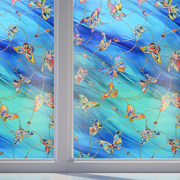 LEMON CLOUD Stained Glass Window Film,3D Decorative Window Privacy Film Non Adhesive, Butterfly Faux Static Window Cling for Bathroom Home Door(Butterfly,23.6 x 35.4inch)