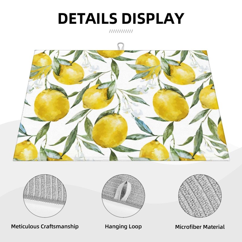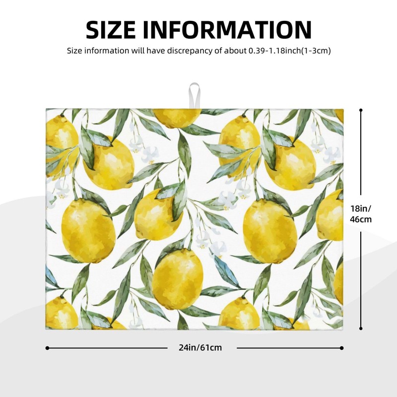 Lemon Dish Drying Mat 18x24 For Kitchen Counter Absorbent Microfiber Dishes Pad Dish Drainer Rack Mats Fast Dry Kitchen Accessories