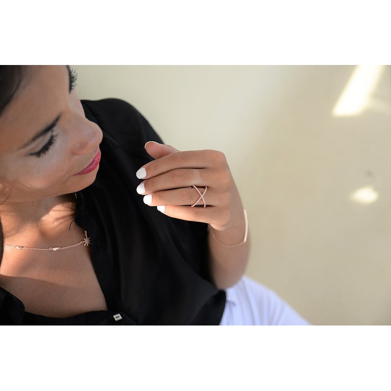 LEMON GRASS Womens Criss Cross Ring X Ring Micropave CZ Inlay 14K Rose Gold Plating Size 8