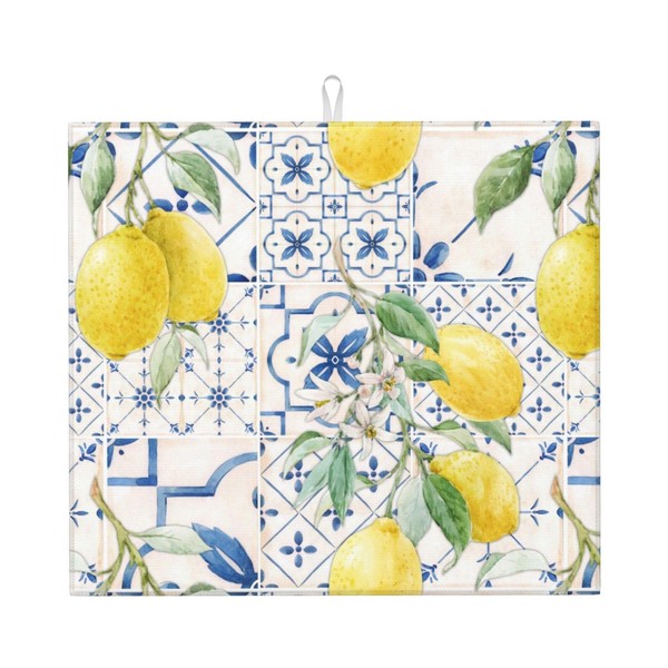 Lemon Mexican Blue Tilt Drying Mat 16x18 Inch For Kitchen Counter Drying Mats Dish For Kitchen Counter Easy Clean Kitchen