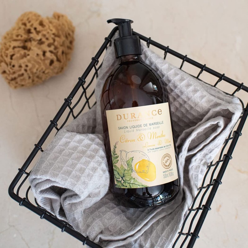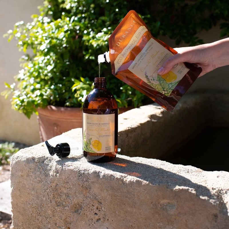 - The bottle is made of glass, refillable with DURANCE Eco refills and the generous 500ml format allows you to enjoy 140 showers or 450 hand washes