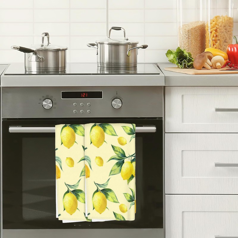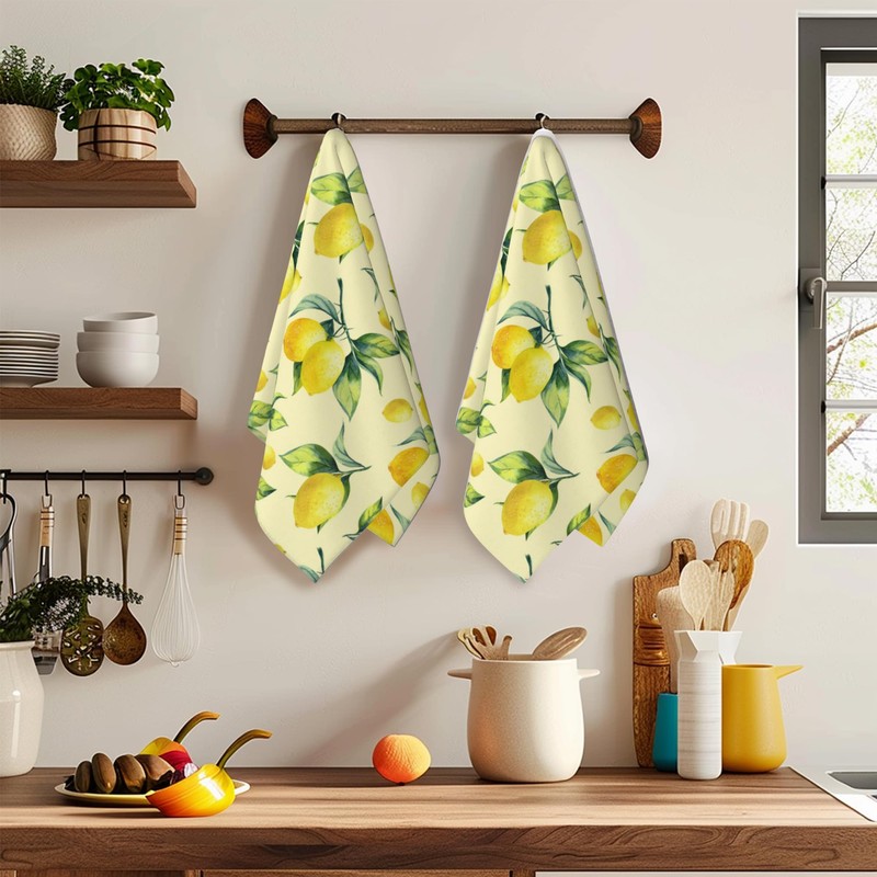 Lemon Yellow Hand Towels Set of 2 Soft Guest Bath Towel Absorbent Drying Cloth Hand Towel Bathroom Decorations Thin Kitchen Tea Dish Towels