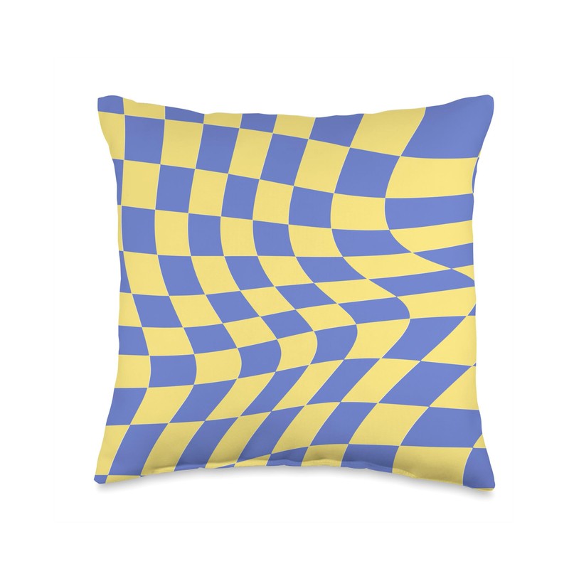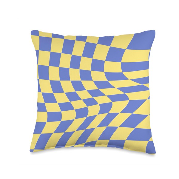 Lemon Zest Twist Retro Checkerboard Blue Yellow Checkered Throw Pillow