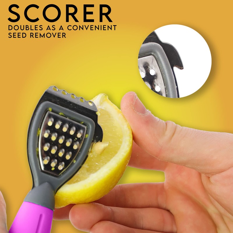 Lemon Zester Bar Tool 3 in 1, Citrus, Lime Zester, Reamer and Grater with a Soft-Touch Handle, Compact for Easy Storage and Dishwasher Safe (Pink)