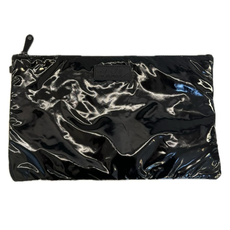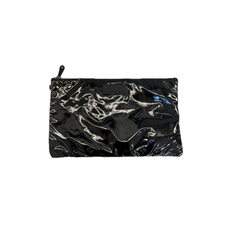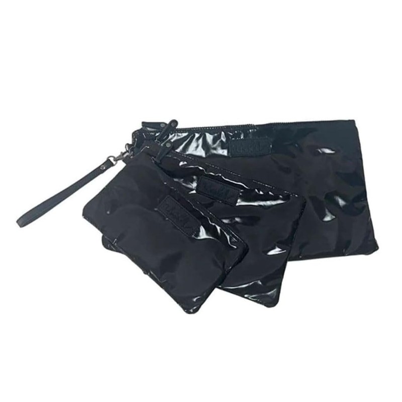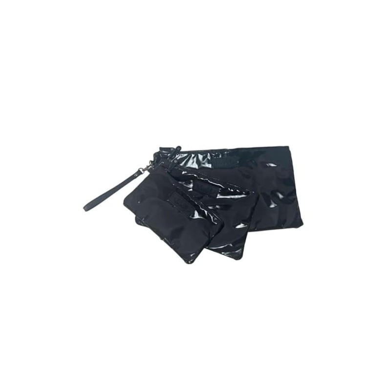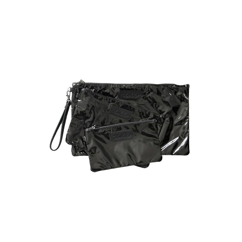 lemonbella Medium Carly Trio Pouch Set 3 Nylon Quilted Metallic Organization Bag with Wristlet - Versatile for Travel, Cosmetics, Tech, and Everyday Essentials, Black