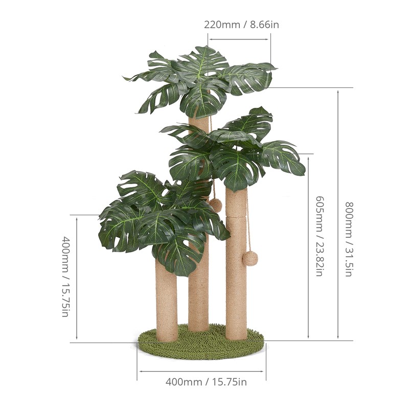 • 【Not only a cat scratching post but also a beautiful decoration】Transform Your Home into a Feline Jungle with Our Forest Cat Scratching Post!Elevate your home decor with this gorgeous 15.75"*15.75"*31.5" High cat scratching post that doubles as a beautiful decoration. With 3 sisal-covered scratching poles, 15 lush leaves, and a carpeted base resembling a tropical forest, your kitty will feel right at home in this jungle oasis.