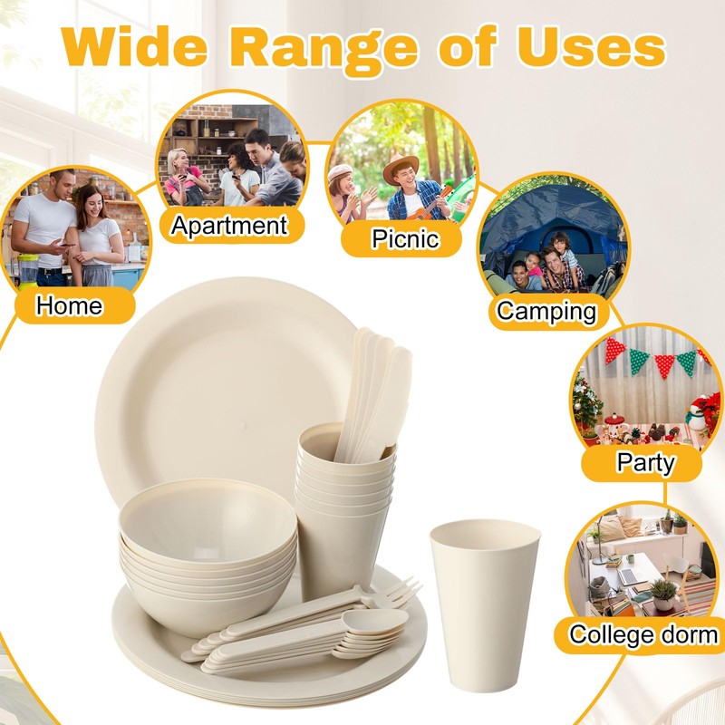 • Multiple Uses: our plastic plates and bowls sets is lightweight and compact, easy to store, and very suitable for preparing a set of such plates for your family, it is not only suitable for student dormitories, university dormitories, apartments, and shared kitchens, but also suitable for outdoor picnics, family dinners, company events, RV camping, beaches, mountain climbing, parties and other occasions, it is cost effective and is an ideal choice for friends or for personal use