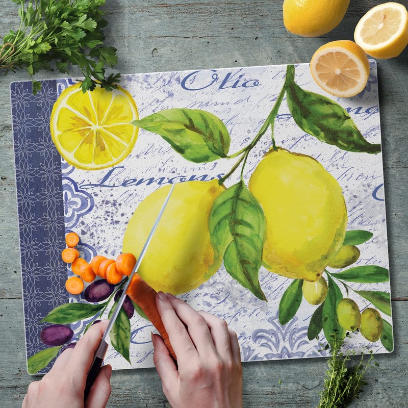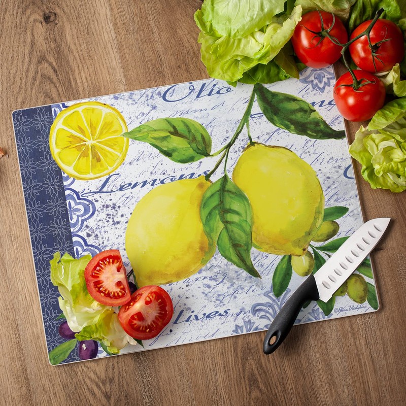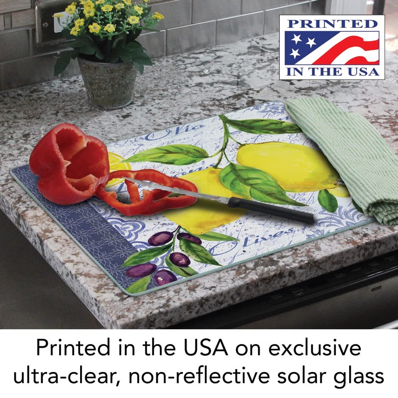 Lemons & Olives Glass Cutting Board, 14-7/8 by 11-3/4-Inch