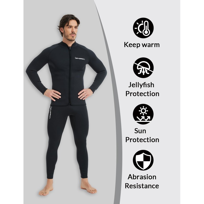 Lemorecn Men’s 3mm Wetsuits Jacket Long Sleeve Neoprene Wetsuits Top(2031blackXL)