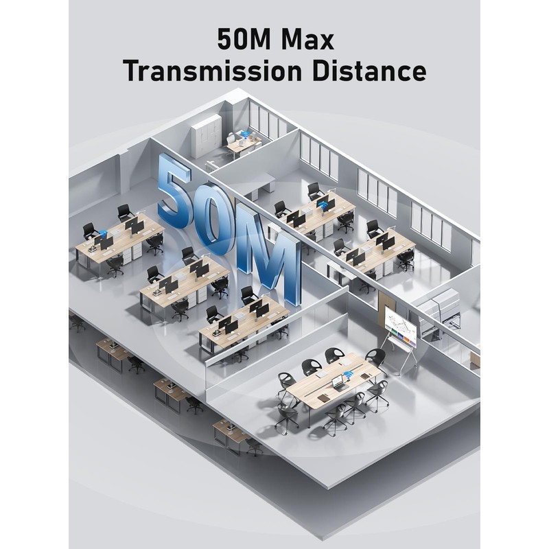 • 【164FT Wireless Transmission Distance】: This wireless HDMI transmitter and receiver has a transmission range of up to 164 feet (50 meters), perfect for live broadcasts and photography. Users can project freely without cable connections, though transmission distance may be affected by walls or obstacles. For optimal performance, use it in open spaces