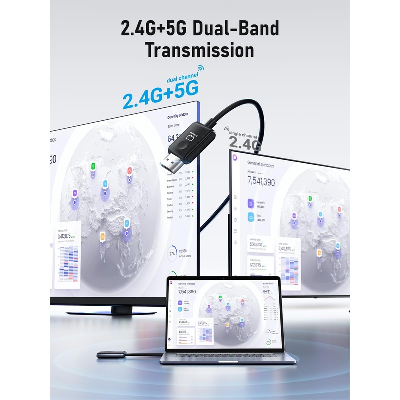 • 【2.4/5G Dual-Band Transmission & 1080P@60Hz Resolution】: The wireless HDMI transmitter and receiver supports 2.4G and 5G dual-band transmission and 1080P@60Hz resolution at 60Hz, ensuring real-time transmission over long distances in complex signal environments. This maintains high data efficiency for everyday scenarios like meetings and teaching