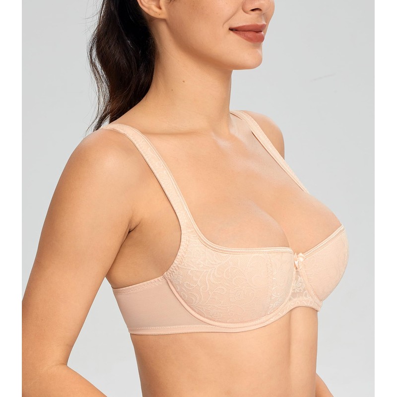 Lemorosy Women's Balconette Bra Push Up Lightly Padded Wide Straps Underwire Bra(Beige,40B)